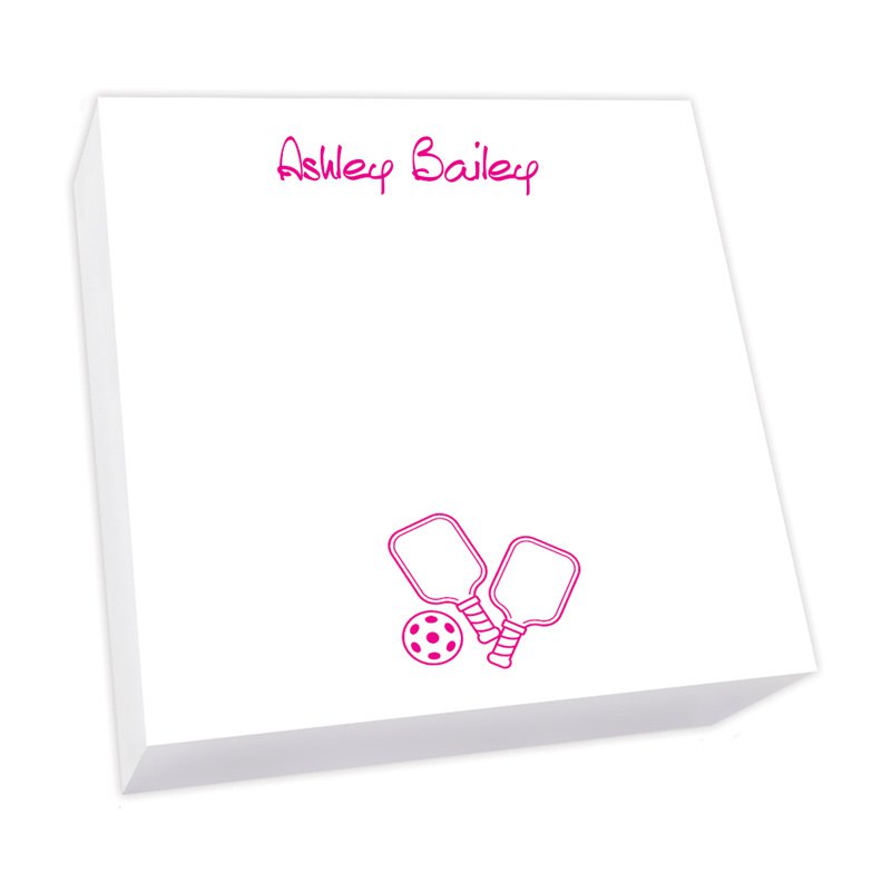 The Pickleball Memo Square - White Refill offers one line of personalization, printed in your choice of 10 fonts and 16 matte ink colors. Select the location of your personalization in 1 of 6 locations. Select 1 pickleball motif artwork from 3 options. Produced on our high-quality white paper text sheets. Add an optional color ribbon to your memo square.