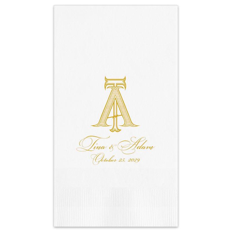 Elevate your reception with the Togetherness Guest Towel, stylish Wedding Guest Towels featuring a chic two-letter monogram and two personalized lines in matte-ink across your choice of paper and ink hues. These Personalized Guest Towels combine luxury and thoughtful detail. Ideal for discerning people seeking refined décor that doubles as an elegant memento. Perfect for upscale celebrations.
